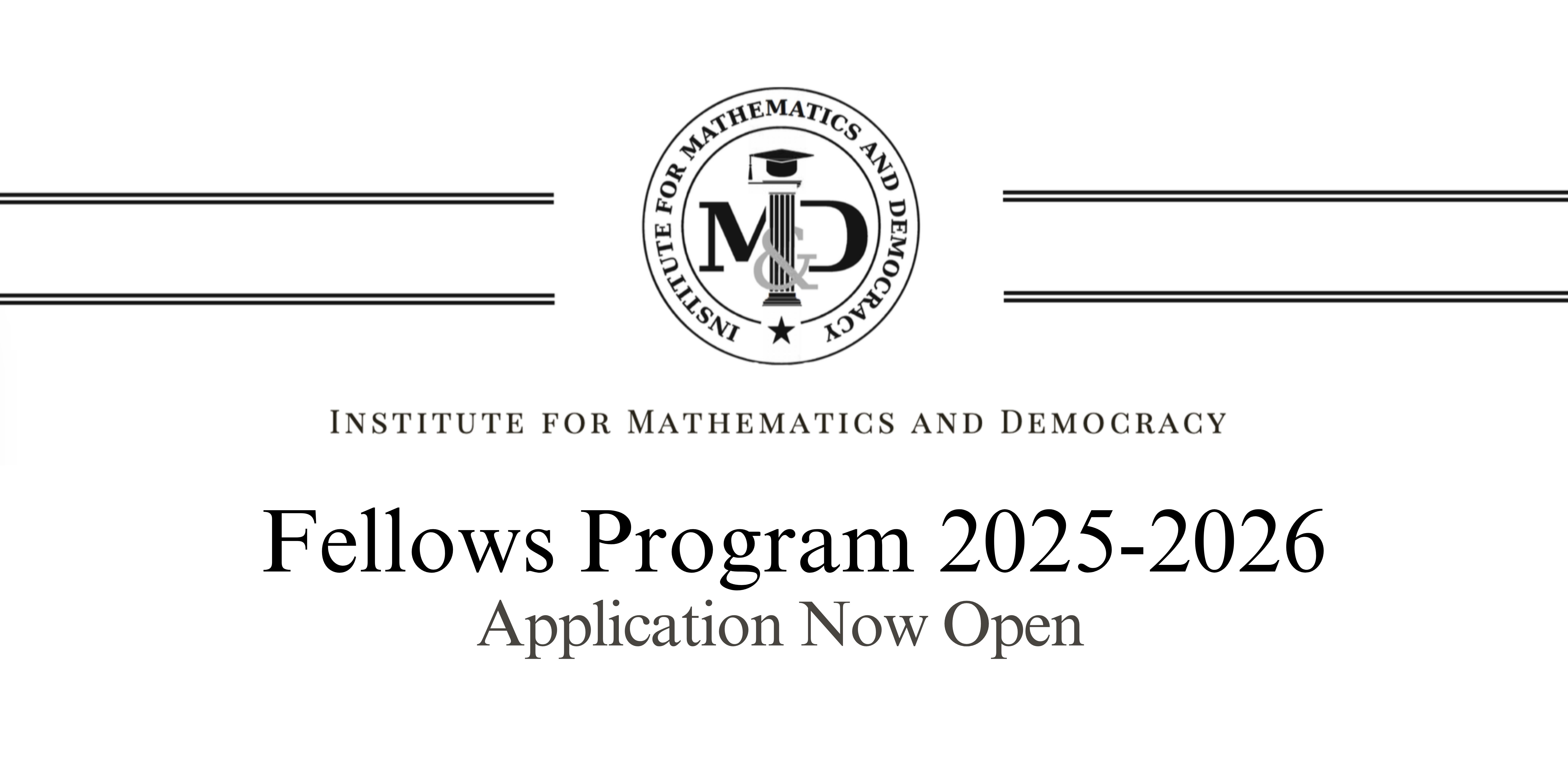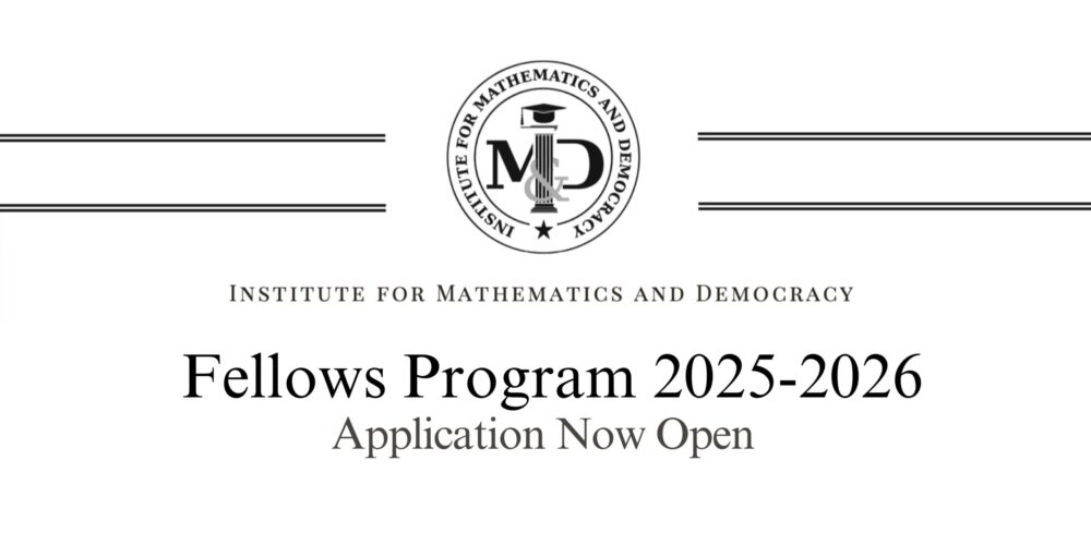 As the start of the school year has begun, IMD is now accepting applications to our Fellows Program. The purpose of the program is to learn and engage in research on the mathematical underpinning of democratic processes such as voting, apportionment, districting, gerrymandering, and quantification of power. In the fall, the program is mainly pedagogical, focused on learning the mathematics of politics. Near the end of the fall semester, students will select a potential research problem and work on it during the spring semester.